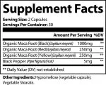 Ingredients: Organic Maca Root (Black), Organic Maca Root (Red), Organic Maca Root (Yellow), Black Pepper, Cellulose (Vegetable Capsule), Vegetable Stearate.